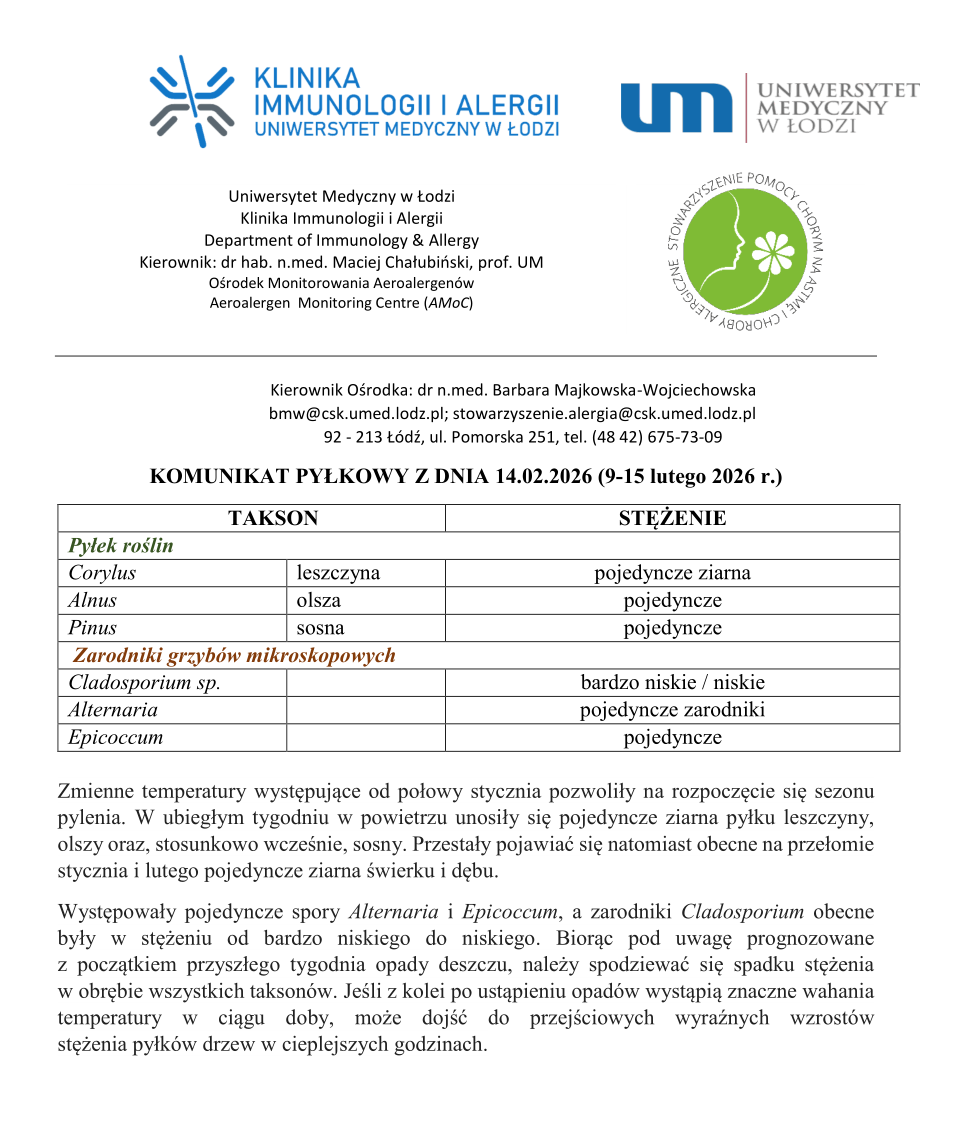 Telefon 42 675 73 09 Fax (48 42) 678 22 92 E-mail: stowarzyszenie.alergia@csk.umed.lodz.pl