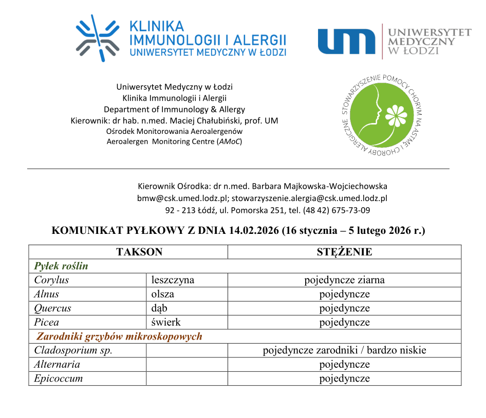 • Komunikat pyłkowy z 14 lutego 2026 r.